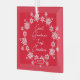 Das erste Weihnachtsschmuck-Set der Großmutter auf einem roten Hintergrund gerahmt mit einem weißen Schneeflocken. Ein Wonder Großelternweihnachtsgeschenk wird sicher für viele Jahre geschätzt werden. !