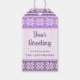Personalisierte Geschenketiketten mit einem gemütlichen lila und Lavendel Nordic Schneeflocken Imitate Strick Pullover-Muster mit Ihrem persönlichen Gruß (z.B. Happy Holidays, Frohe Weihnachten, Saisongrüße, etc.) und Ihrem Namen auf der Vorderseite oder löschen Sie den Beispieltext für Handschrift. HILFE: Für Hilfe bei der Modifizierung oder Personalisierung des Designs, bei Farbänderungen, bei der Übertragung des Designs auf ein anderes Produkt oder wenn Sie die Dinge koordinieren möchten, wenden Sie sich bitte an den Designer, BEVOR Sie die Bestellung über die Registerkarte Zazzle Chat MESSAGE unten durchführen, oder per E-Mail an makeitaboutyoustore@gmail.com.
