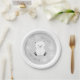 Babyduschpapier-Teller mit einer Abbildung eines Babypolarbären und Schneeflocken auf grauem Hintergrund. Personalisieren Sie den Namen.