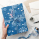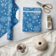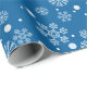 Benutzen Sie dieses festliche Schneeflocke-Packpapier, um Ihre Geschenke diese Ferienzeit einzuwickeln. Die Ausrüstungsbeschreibungen ein Muster mit Schneeflocken in den verschiedenen Größen und Formen und ein mittlerer blauer Hintergrund.