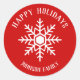 Dieses rund um die Schneeflocke aufklebende Label hat einen roten Hintergrund mit einer einfachen Design-Schneeflocke in der Mitte, mit Happy Holidays Gruß oben und Familienname unten. Personalisieren Sie dies mit Ihrem eigenen Weihnachtsgrüßen und Familiennamen. Oder passen Sie diesen Aufkleber an, indem Sie die Hintergrundfarbe in eine beliebige Farbe ändern. Diese Aufkleber eignen sich hervorragend für Weihnachtskarten-Umschläge oder Geschenke für den Cookie-Austausch.