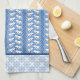 Dieses gemusterte, blaue Küchenhandtuch hat ein winterliches Thema wie Tauben und Schneeflocken. Feiern Sie den Winter mit dieser lustigen, winterlichen saisonalen Dekoration.