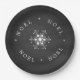 Dieser trendy Feiertags-Teller sagt "Weihnachten" um die Ränder, während eine verzierte weiße Schneeflocke in der Mitte sitzt. Der Hintergrund ist ein schwarzer Tafelblick.