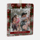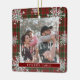 Rustikale, elegante, im Winter rote und grüne karierte Familienkuppelschmuck mit glitzerndem Schneeflocken Rahmen. +++++++++++++++++++++ Einfach mit Ihren 2 Fotos, Textskripten, Familiennamen und Jahr personalisieren!