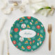 Schneeflocken Aquamarin Monogram Muster Weihnachts Pappteller