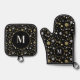 Schneeflocken auf dem Schwarzen Gold Mit Monogramm Ofenhandschuh & Topflappen-Set