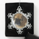 Diese Schneeflockeverzierung, die mit einem wertvollen Foto eines Schnee-geküssten englischen Mastiff geschmückt wird, ist sicher, jeden möglichen Hundliebhaber glücklich zu machen! Diese Hündchenverzierung würde auf einem Weihnachtsbaum dem Büro des Tierarztes groß betrachten.