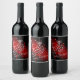 Schneeflocken auf rotem und schwarzem Hintergrund. Weinetikett