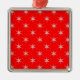 Schneeflocken aus Glas im roten Hintergrund Silbernes Ornament