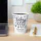Schöne Kalligraphie mit Schneeflocken, winterbezogene Babydusche-Papiertasse. Einfach mit Ihren Daten personalisieren. Karo der Auflistung, um passende Elemente als Gehäusekarten zu finden.