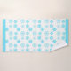 Türkisblaues und weißes Badetuch Set mit Schneeflocken auf Handtuch und Badetücher. Das Waschlappen wird in einem soliden türkisfarbenen Blau gemacht mit dem benutzerdefinierten weißen Text lesen Let it now.