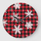 Schneeflocken & Buffalo Kariert: Wintergarten Große Wanduhr