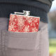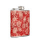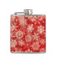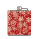 Schneeflocken Muster. Nahtloses Muster mit flauschigen weißen Schneeflocken auf rotem Hintergrund.