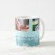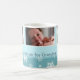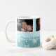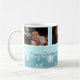 Fröhliche Weihnachts-Oma individuelle Foto-Tasse in stilvollen hellblauen und weißen Farbtönen in einem zarten Schneeflockmuster mit individualisierbarem Text und Foto, perfekt als Urlaubsgeschenk.