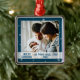 Diese Weihnachtsbaumdekoration ist mit Ihrem eigenen Foto und Text vollständig anpassbar. Der Hintergrund ist blau, mit weißen Schneeflocken.