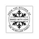 Gebacken mit Liebe Gummi Briefmarke mit einer Schneeflocke für Ihr Weihnachtsgebäck oder Wintergebäck. Aus der Küche von in einem gekrümmten Text. Geben Sie Ihren Familiennamen, Firmennamen oder Firmennamen ein.