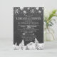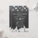 Rustikales, elegantes Wintergraues Probe-Dinner-Einladungsvorlage auf dunkelgrauem Holzkohlechalkboard mit Kiefernbäumen, wunderschöner Rahmen und weißen Schneeflocken-Rahmen. Füllen Sie Ihre Informationen in den Flecken, Sie können wählen, um es anzupassen, weitere sich ändernde Schriftartes und Farben der Schrift. — Die Einladung ist geeignet für Winter-Chic / Berge rustikale Land inspiriert Party. — Wenn Sie Hilfe benötigen, kontaktieren Sie mich bitte!