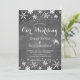 Rustikal elegante Winterhochzeit stilvolle Einladung auf dunkelgrauem Kalkboard mit weißen Schneeflocken und weißen Schriftzeichen. Füllen Sie Ihre Informationen in den Flecken, Sie können wählen, um es zu ändern, weitere Schriftart und Farben des Textes. — Die Einladung ist geeignet für elegante Winter rustikale Hochzeiten. — Wenn Sie Hilfe benötigen, kontaktieren Sie mich bitte!