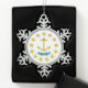 Schneeflocken mit der Flagge der Insel Rhode Zinn-Ornament