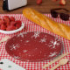Schneeflocken mit Tellern aus dem Roten Hintergrun Pappteller