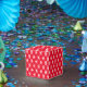 Schneeflocken mit weißem Stern, rote Gabe Geschenkschachtel
