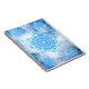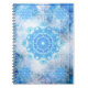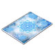 Das blaue Design erinnert an Schneeflocken in einem frostigen Fenster.