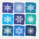 Schneeflocken in weißem Grundierrahmen auf blauem Hintergrund