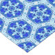 Tablecloth in einem geometrischen, Wabenquiltmuster von Schneeflocken in tiefblauem und weißem Kobalt mit türkisfarbenem Akzent