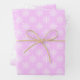 Diese Packpapier Blatt hat ein Blatt, das pastellrosa mit weißen Schneeflocken, ein Blatt, das Spastel rosa mit den Worten Let it now! Weiß und ein Blatt weiß mit pastellrosa Schneeflocken.