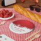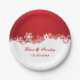 Schneeflocken roter weißer Winter Moderne Hochzeit Pappteller