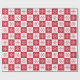 Weiße und rote Schneeflocken wechseln sich auf karierten roten und weißen Plätzen ab, um ein geometrisches Muster zu schaffen, das perfekt für den Weihnachtsurlaub ist.