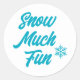 Helle aqua blaue Schneeflocke mit "Schnee viel Spaß" Text auf weiß.
