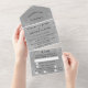 Schneeflocken, Schnee, Grau, Winter Wonderland Hochzeit alle in einer Einladung. Drei-fach elegante, schicke, einzigartige, moderne Einladungen für Hochzeiten. Passen Sie Ihre Daten an. Bestellen Sie rechtzeitig, um eine Enttäuschung zu vermeiden.