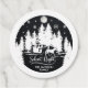 Weihnachtsgeschenk-Tag mit weißen Kiefern-Silhouetten mit Schneeflocken und einem Pferd gezeichnet Schlitten auf schwarzem Hintergrund, mit dem Wortlaut Silent night in handgeschriebener Schrift. Die Rückseite des Geschenktafels lässt sich leicht anpassen, indem Sie Ihre eigene Nachricht und Ihren eigenen Familiennamen hinzufügen.