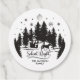 Weihnachtsgeschenk mit Silhouetten aus schwarzen Kiefern mit Schneeflocken und einem Pferd gezeichnet Schlitten auf weißem Hintergrund, mit dem Wortlaut Stille Nacht in handgeschriebener Schrift. Die Rückseite des Geschenktafels lässt sich leicht anpassen, indem Sie Ihre eigene Nachricht und Ihren eigenen Familiennamen hinzufügen.