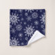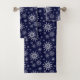 Dieses Badehandtuchhandtuch-Set wird in einem festlichen Weihnachtsfeiertag in tiefblauen und weißen Schneeflocken gedruckt. Passen Sie dieses Objekt an oder kaufen Sie, wie es ist. Bild