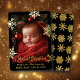 Hübsche Goldschneeflocken und Goldfolie Baby Foto Weihnachtskarte. Sie können den Text personalisieren, Ihre Namen hinzufügen und Ihr Foto im personalisierenden Bereich hochladen.