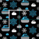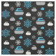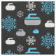 Stoff mit einem Schneeflocken und einem abgerundeten Felsmuster in blau, grau und weiß auf schwarzem Hintergrund. Ideal für Curler und Curling-Fans.