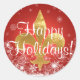 Machen Sie Ihren Urlaub elegant mit diesem festlichen Design einer weißen Schneeflocke und goldenen Fleur-de-lis auf einem roten Weihnachtsgebirge. Vervollständigen Sie Ihren Urlaubsstil mit Grußkarten, Briefmarke und Etiketten.