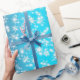 Schneeflocken und Glitzern über blaues Licht Geschenkpapier