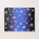Schneeflocken und Glitzern über Navy Blue Light Puzzle