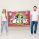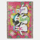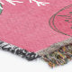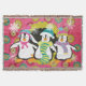 Schneeflocken und Orbs Penguins Urlaubsdecke mit drei niedlichen Pinguinen in Winterhütten und Schals auf einem Hintergrund von heiß rosa mit Schneeflocken, einem Streifen aus polika gepunktetem Senf, und einem schwarzen Zentrum mit weißen Polka-Punkten und Schneeflocken!