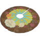 Schneeflocken und Weihnachtsbaumrock in der Sternexplosion, ein schönes Retrodesign mit braunen Schneeflocken aus Gelb, Rosa, Aqua, Orange, Weißpolka, Senfgrün und eine Aqua-Sternexplosion mit vier hübschen Retro-Ornamenten und einem cremefarbenen Banner, den Sie mit Ihrem Familiennamen personalisieren können!