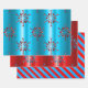 Schneeflocken und Streifen Rot und Blau Weihnachte Geschenkpapier Set