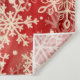 Schneeflocken Muster. Nahtloses Muster mit flauschigen weißen Schneeflocken auf rotem Hintergrund.