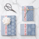Schneeflocken, Weihnachtsbäume staubige blaue Stre Geschenkpapier Set