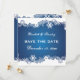 Schneeflocken blauen Winter Hochzeit Ankündigung Datum freihalten, mit einem weißen Rand von Schneeflocken auf leuchtendem blauem Boden. Eine perfekte Wahl für Winterhochzeiten im Dezember.