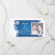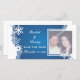 Schneeflocke, blaue Winterhochzeit Save the Date Fotokarte, mit einem weißen Rahmen von Schneeflocken auf leuchtendem blauem Hintergrund. Eine perfekte Wahl für Winterhochzeiten im Dezember.