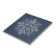 Winterurlaub Schneeflocke, Vintager Stickereischnee, weißes Schneeflockenmuster im blauen Hintergrund