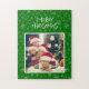 Feiern Sie die Ferien mit diesem maßgeschneiderten Foto-Puzzle. Puzzle hat ein Schneeflockenmuster auf grün und der Text Frohe Weihnachten. Fügen Sie Ihr Familienbild für eine personalisierte Touch hinzu. Jigsaw Puzzle ist ein großes Geschenk für einen Geburtstag, Weihnachten oder einen anderen Urlaub, besonders für Familien!